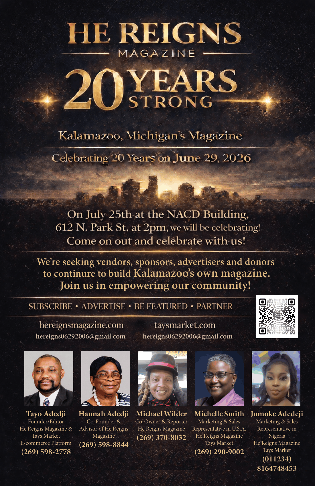 For 20 years, He Reigns Magazine has served as a platform to highlight voices, share stories, and promote businesses and initiatives that strengthen the local community. This celebration is both a reflection on that journey and an opportunity to look ahead to what’s next.