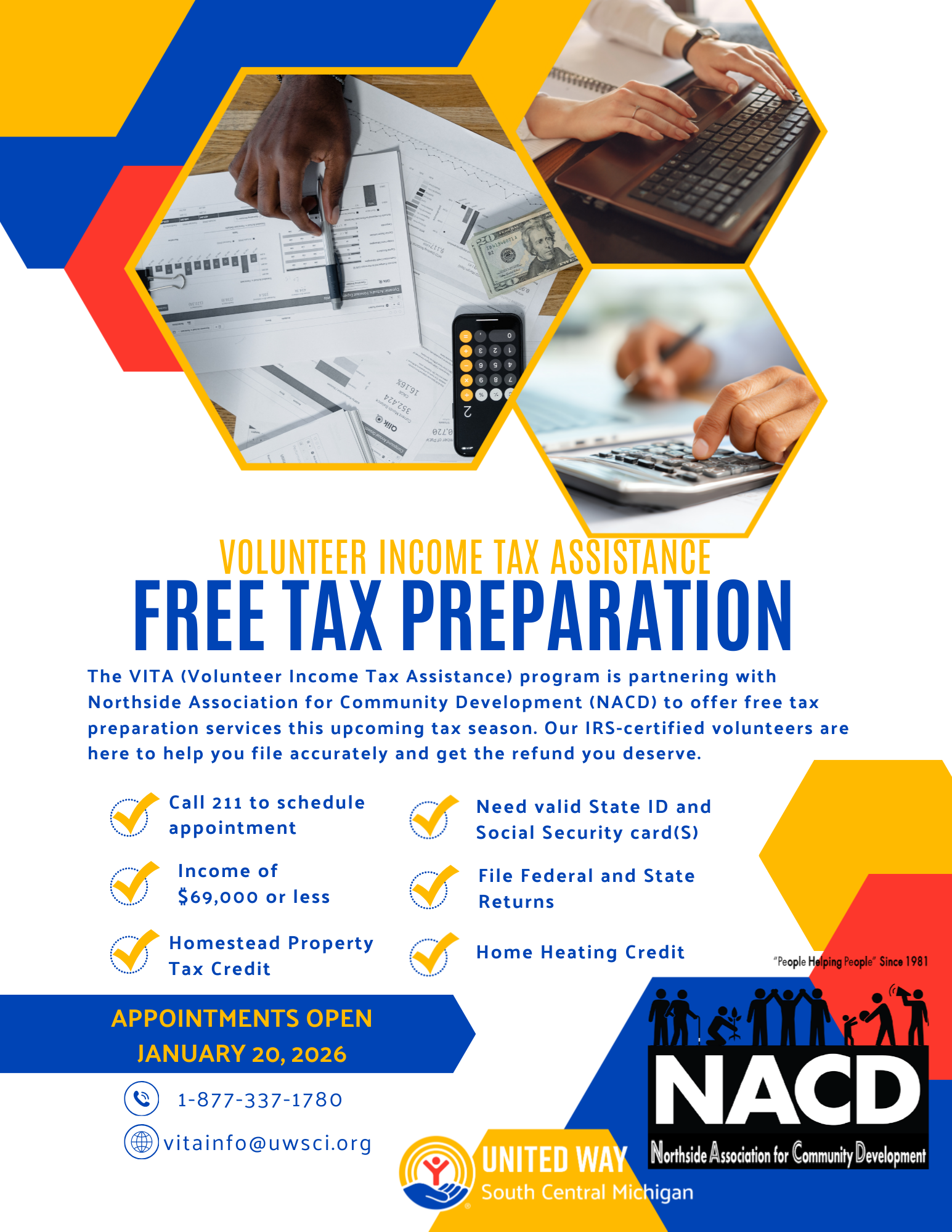 The Volunteer Income Tax Assistance (VITA) program is partnering with NACD to provide free, reliable tax preparation services to eligible community members during the 2026 tax season.